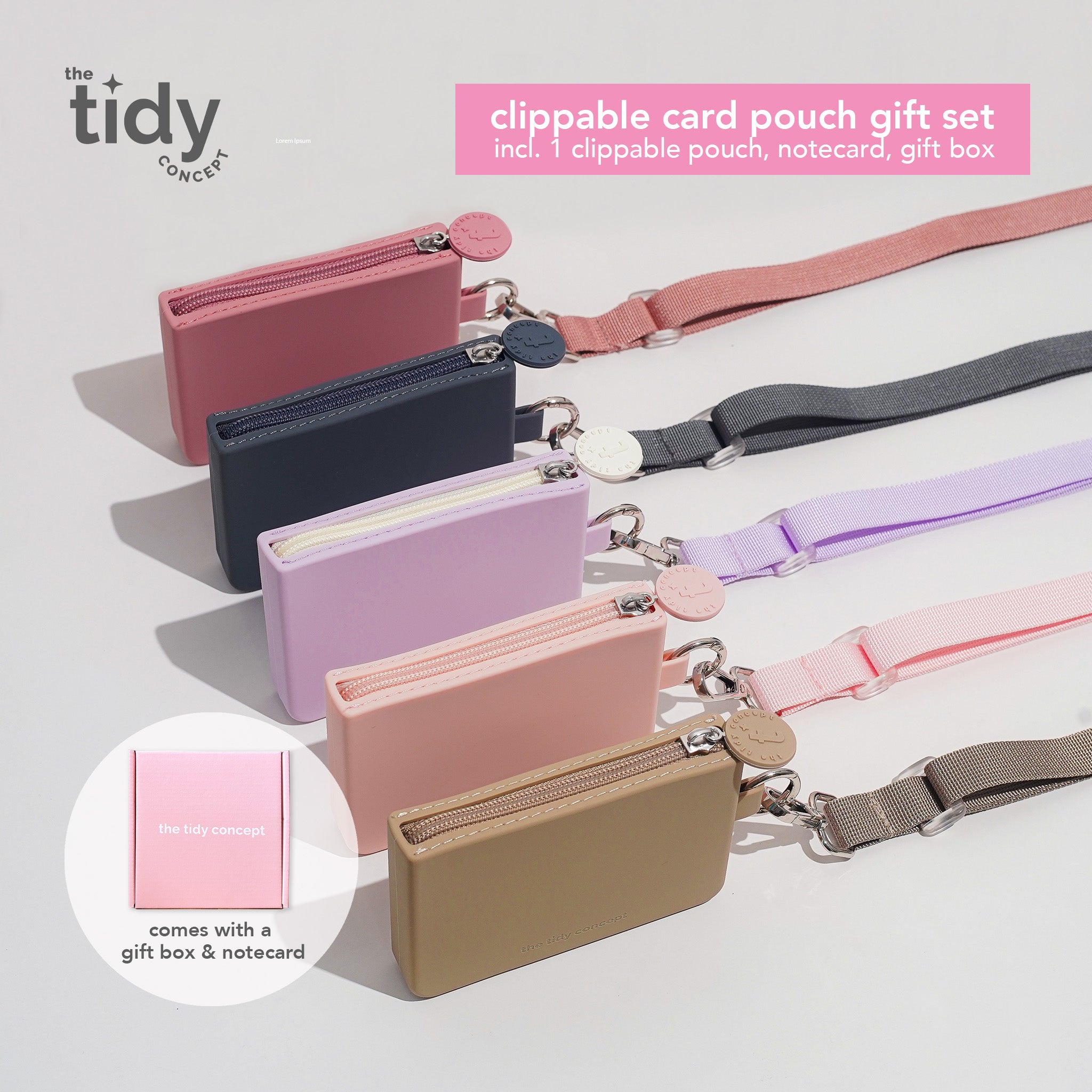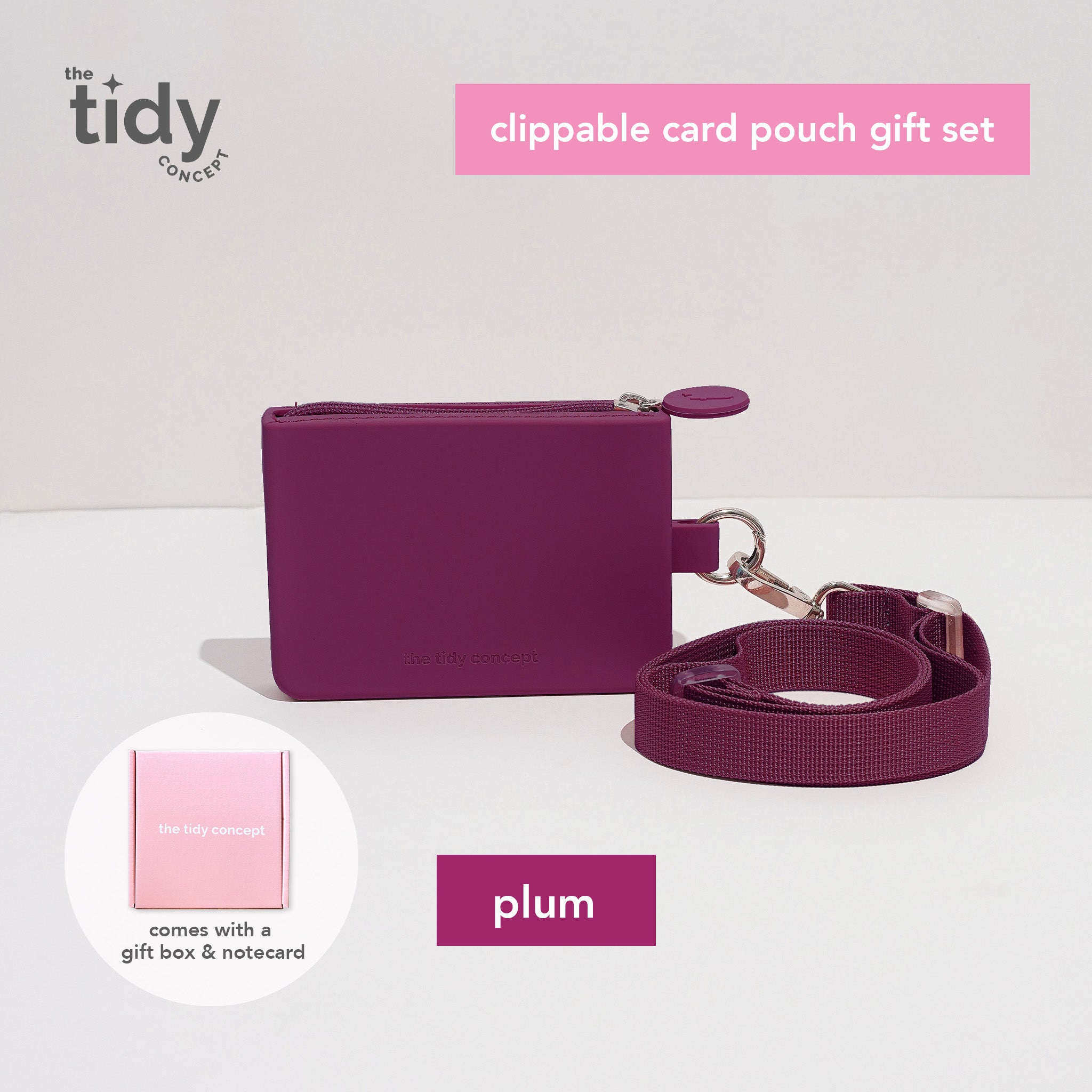 Each Gift Set comes with the following items: 1 Clippable Card Pouch, wrapped in an exclusive The Tidy Concept Gift Box with a free notecard!