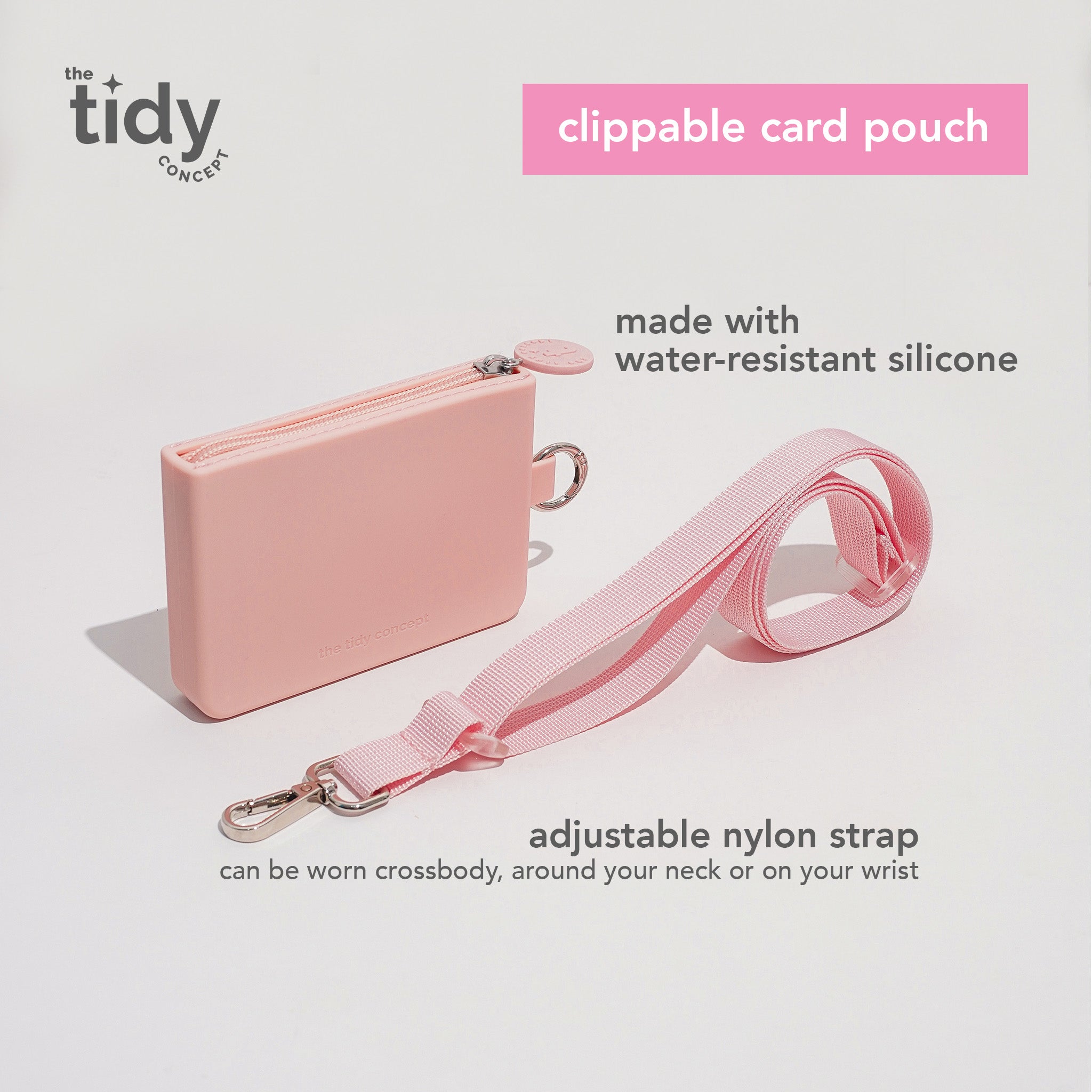 Featuring a practical clippable ring on the side, the pouch easily attaches to your bag, belt loop, or keychain for added convenience. Whether you need your hands free or want quick access to your items, this pouch offers the ideal blend of practicality and style. For even more versatility, the adjustable nylon strap allows you to wear it your way—crossbody, around your neck, or as a wristlet. A sturdy zipper keeps your belongings secure, while the lightweight design ensures it won’t weigh you down throughout the day.